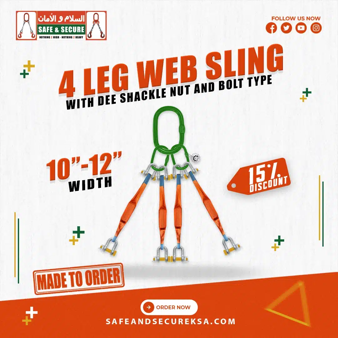 SSTC offers 4 LEG WEB SLING WITH D-SHAPED SHACKLE BOLT PIN 6:1 in Saudi Arabia