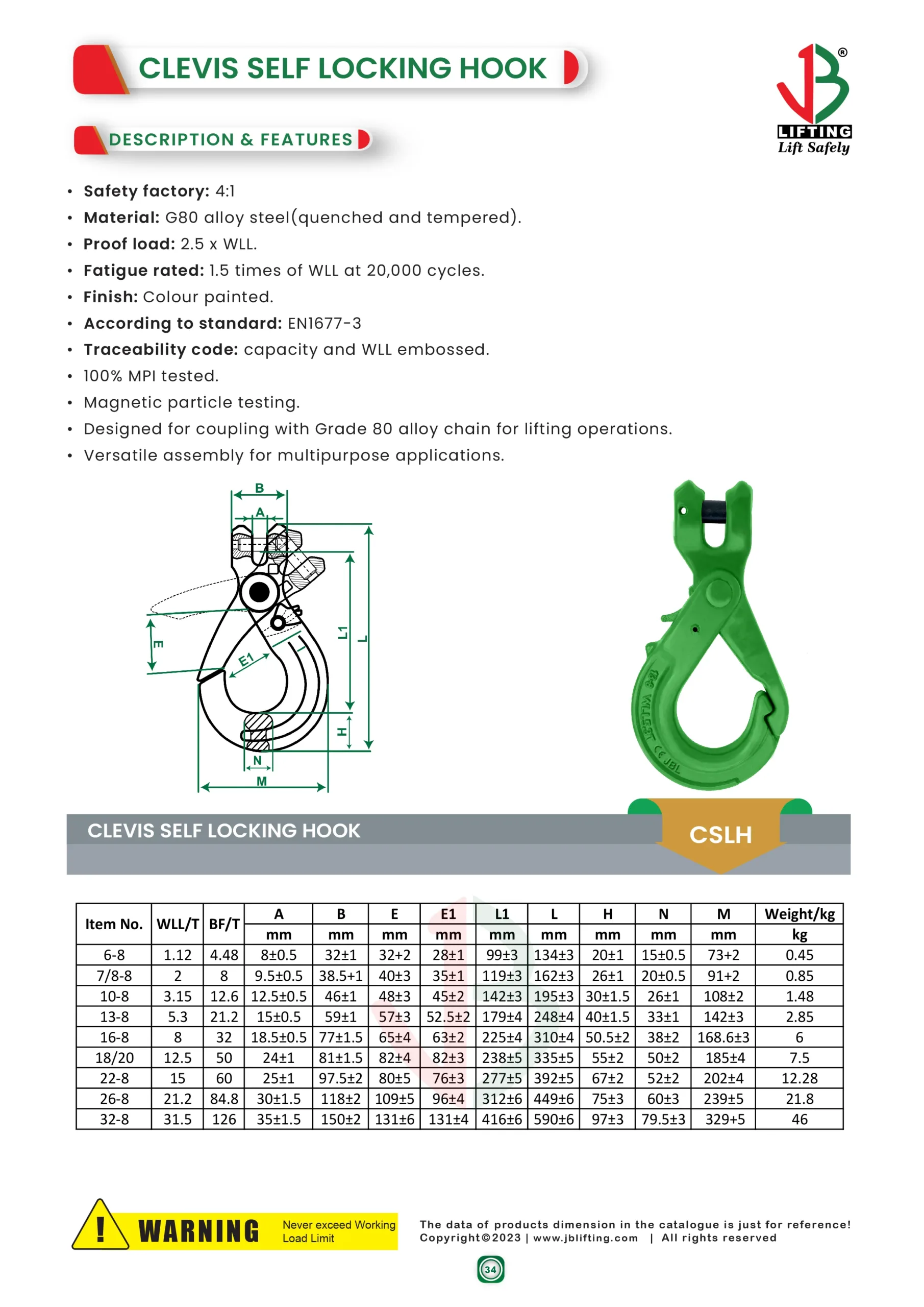 - Optimized Design: Tailored for seamless coupling with a Grade 80 alloy chain, the Clevis Self-Locking Hook ensures secure and efficient overhead lifting operations.