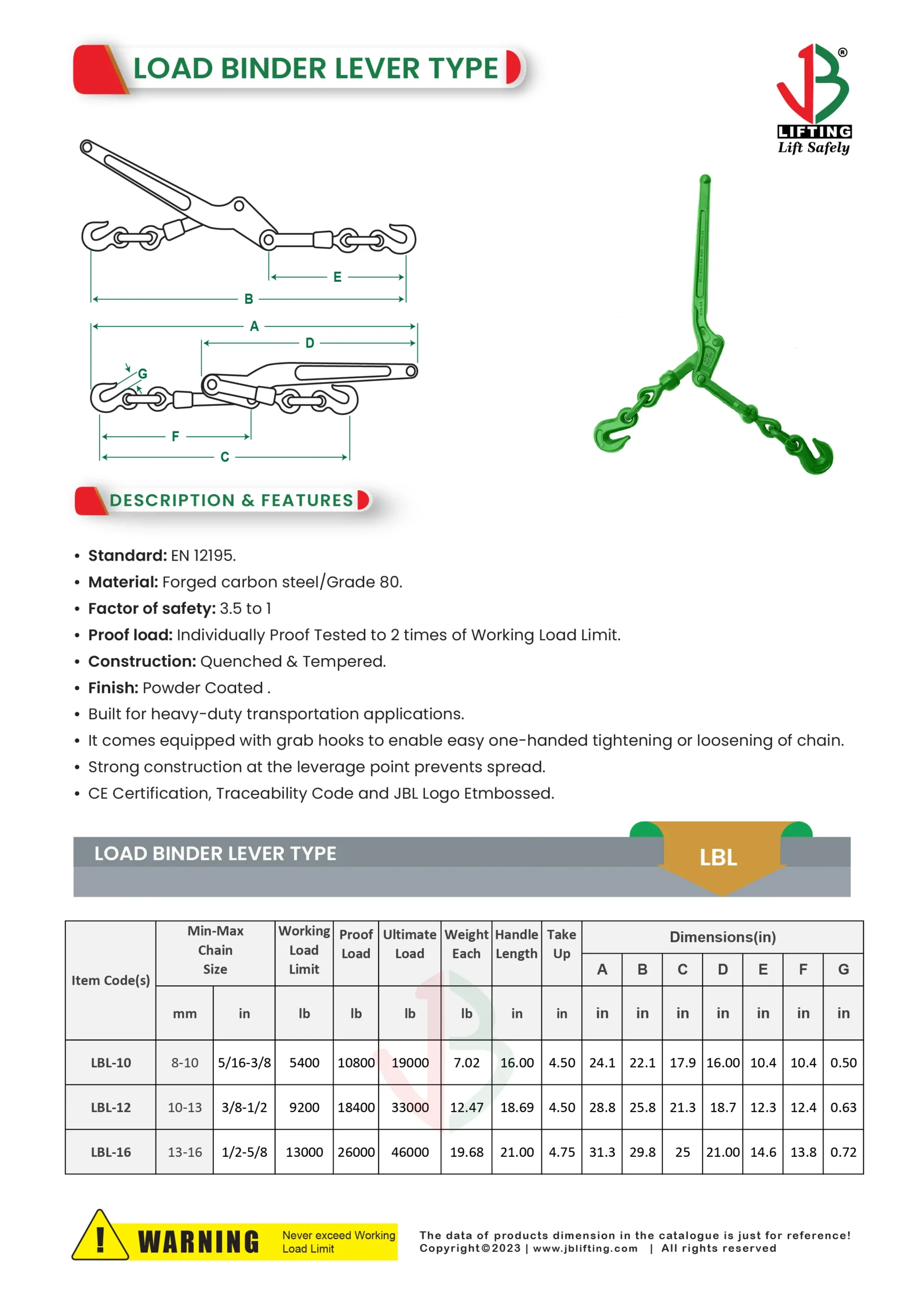 - Proof Load Tested: Each load binder is individually proof tested to 2 times the working load limit, ensuring compliance with safety standards and peace of mind during use.