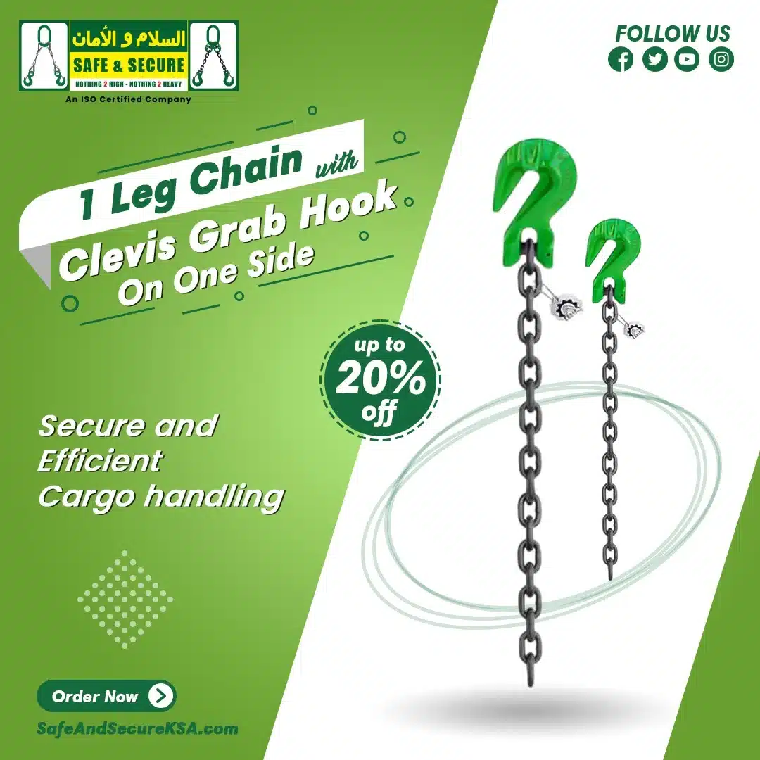 At SafeAndSecure, we believe safety and efficiency should always go hand in hand. Therefore, we design products like the One Leg Chain Sling With Clevis Grab Hook on One Side to deliver exceptional results while ensuring peace of mind. Whether you’re lifting heavy loads or managing cargo work, this chain sling is the perfect choice for your needs.